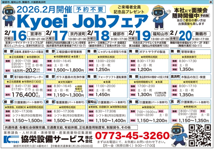 下記日程にて「Kyoei JOB フェア(会社説明・面接・派遣登録会)」を開催いたします。